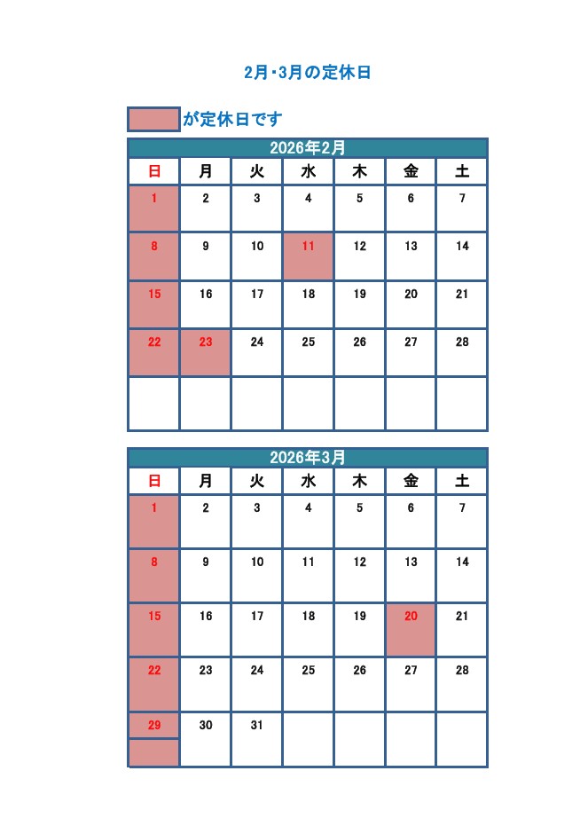 2月・3月の営業日
